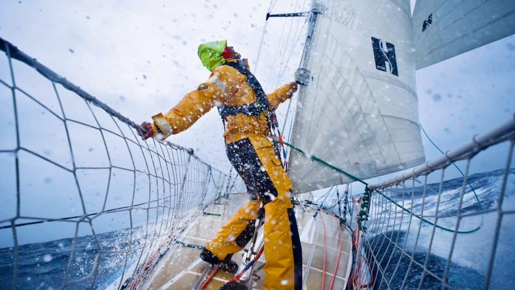 Modern technical clothing has come a long way, but when it comes to sailing in extreme conditions, getting wet is often unavoidable. Bob advises that the key to staying warm is to limit the time spent on deck. Before heading out, teams should discuss their tasks to ensure everyone knows their role, which can help streamline operations and reduce exposure to the elements. For instance, during a headsail change, it may be tempting to push through the maneuver quickly, but taking a moment to turn off the breeze can lead to a more efficient process and less time spent in the cold.
