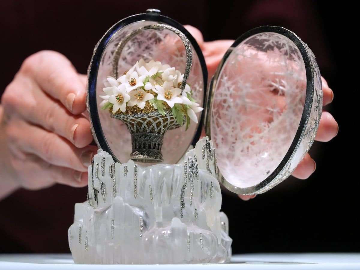 Christie’s auction house says the Winter Egg is just one of seven of the opulent ovoids remaining in private hands. It will be offered for sale at Christie’s London headquarters on Tuesday.