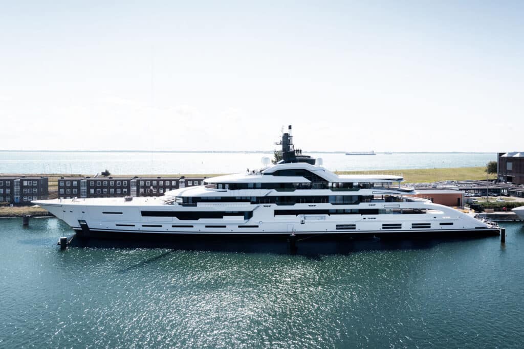 Amels has launched its largest yacht to date, the 120-meter Project Tanzanite, from the Damen Yachting facility in Vlissingen, The Netherlands. The full-custom build, previously known as Amels 477, will undergo outfitting ahead of delivery scheduled for 2026.