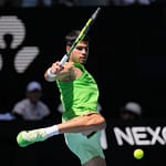 In the opening men’s match Sunday, No. 1-ranked Carlos Alcaraz continued his bid for a career Grand Slam at age 22 with a 7-6 (6), 6-4, 7-5 win over No. 19-seeded Tommy Paul to reach the quarterfinals for the third consecutive year in Australia.
