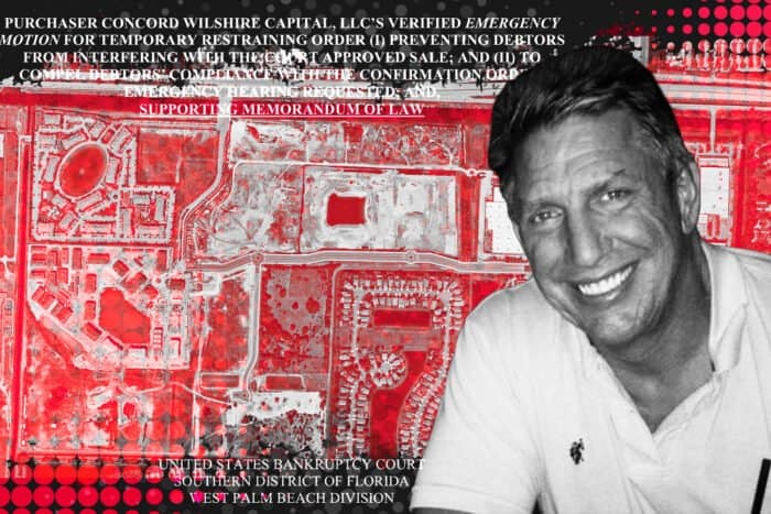 Brian Tuttle is trying to “sabotage” a $60 million bankruptcy sale of his distressed Main Street development site in Royal Palm Beach, a lawsuit alleges.  Concord Wilshire Capital is in line to purchase the site and says it was working to close the deal within all deadlines. But Tuttle “conspired” to divert the deal to a backup buyer, The Ardent Companies, because that would allow him to keep a stake in the property, the lawsuit alleges.  Los Angeles-based Concord Wilshire Capital, led by Steve Sirang, sued Tuttle and his affiliates Main Street at Tuttle Royale and TLH-26 Giles on Thursday […]