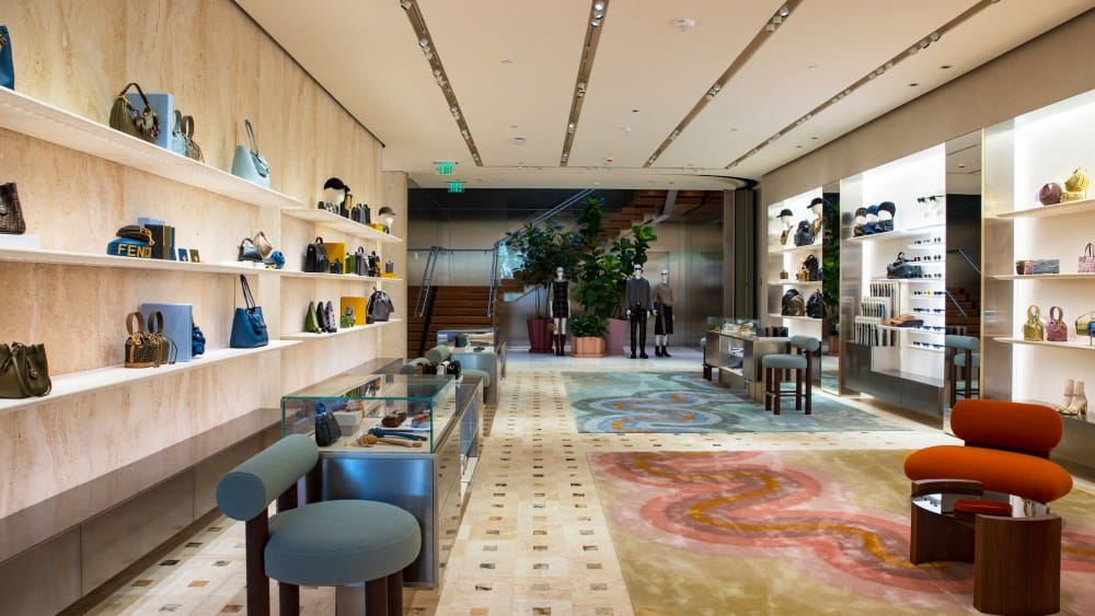 The Miami Design District store is now Fendi’s second-largest location in the United States, following closely behind its flagship in New York City, which measures 6,900 square feet. Nestled among other luxury brands such as Chanel, Louis Vuitton, and Gucci, Fendi’s new boutique stands out not only for its size but also for its architectural elegance. The store has more than doubled in size since Fendi first entered the Miami Design District in October 2015, when it occupied a modest 3,120 square feet.