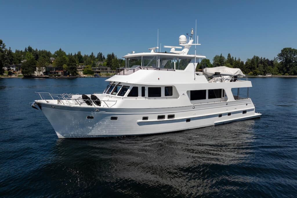 The 2022 Outer Reef 72 Smile Smile Smile is built for cruisers with a desire for bluewater passagemaking. It’s listed with Alexander Marine USA for $3.695 million. Cruise speed is 9 to 10 knots, with a 17-knot top hop.