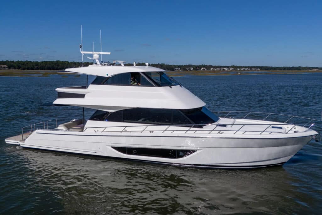 The Maritimo M60 carries the designation of the very inception of the Australian brand’s flybridge motor yacht known today: the highly acclaimed Maritimo 60. The 2024 M60 known as Afternoon Delight is an excellent example of this brand. It’s well-optioned, located in Fort Lauderdale, Florida, and offered by Maritimo for $3.349 million.