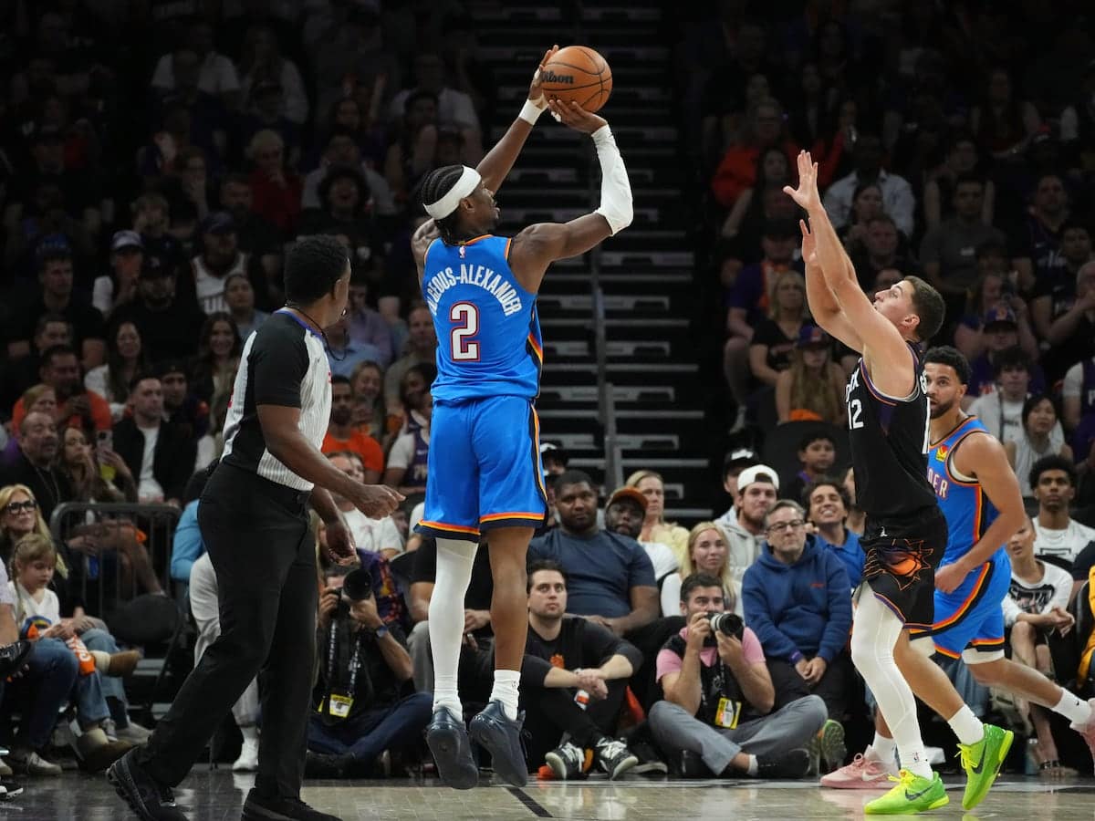 The Thunder were without starter Jalen Williams, who missed his second straight game because of a left hamstring strain. Suns center Mark Williams (foot) and guard Jordan Goodwin (calf) were also out.