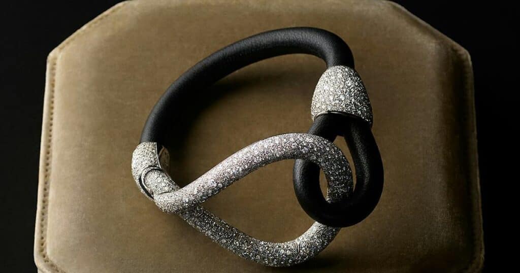 What sets Monili apart is its acute relevance to contemporary design sensibilities. It serves as a study in craftsmanship, collaboration, and boundary-pushing aesthetics. By merging Gucci’s tactile leatherwork with Pomellato’s sensual manipulation of metal and stone, the collection introduces a new lexicon for modern heirlooms. These pieces are not just accessories; they are designed to tell stories and endure through generations.
