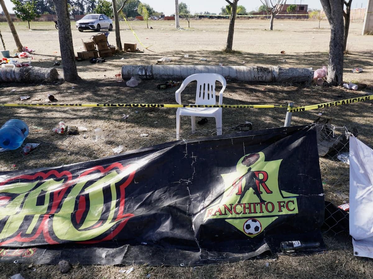 SALAMANCA, Mexico (AP) — Beer cans, candles and blood-stained clothing littered a soccer field in central Mexico on Monday, a day after gunmen killed 11 people and injured 12 others during a gathering after an amateur match.
