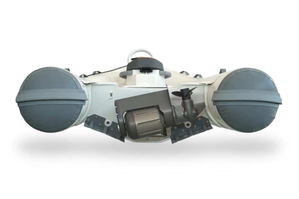 Mitek’s Revolve is an electric outboard motor that rotates—across a horizontal axis—out of the water and above the tender’s transom lines when not in use, and then back into the brine when propulsion is required. This clever design reduces the outboard’s footprint, meaning that it can be installed once, rather than removed and reinstalled each time the tender is used. Mitek also designed Revolve so that multiple motors can be used in parallel, depending on a customer’s propulsion needs.