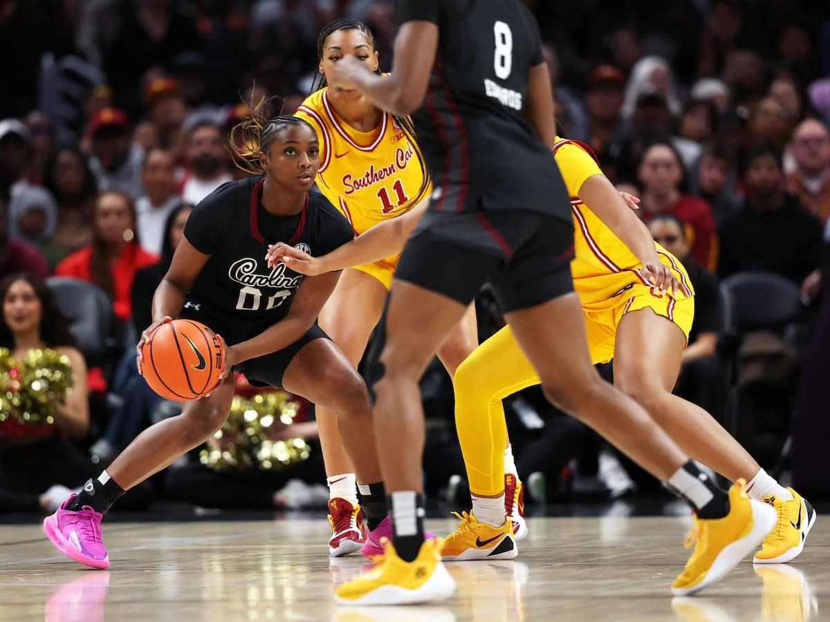 The Trojans were held to seven points in the fourth and finished 1 of 14 from 3-point range. They got outrebounded 56-32. Madina Okot had a season-high 15 rebounds for the Gamecocks.