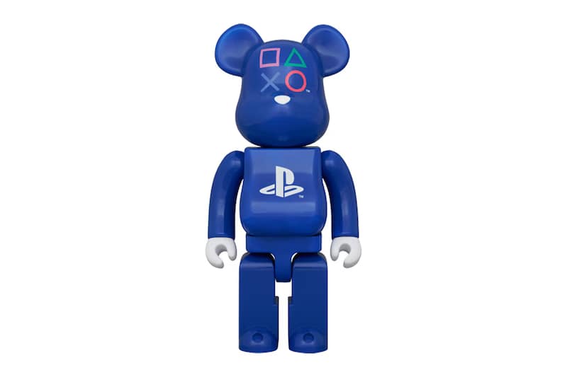 In a celebration of three decades of iconic gaming, PlayStation has collaborated with MEDICOM TOY for the BE@RBRICK in a new 400% collectible. The collaboration, which features a sleek, monochromatic design, is an homage to the original PlayStation console and its iconic branding. The 400% BE@RBRICK is dressed in a vibrant blue, a color that has become synonymous with the PlayStation brand’s aesthetic. The toy’s body showcases the original PlayStation logo alongside the console’s four iconic symbols: the triangle, square, cross, and circle on the face. The nose and hands are highlighted in white for added detail.