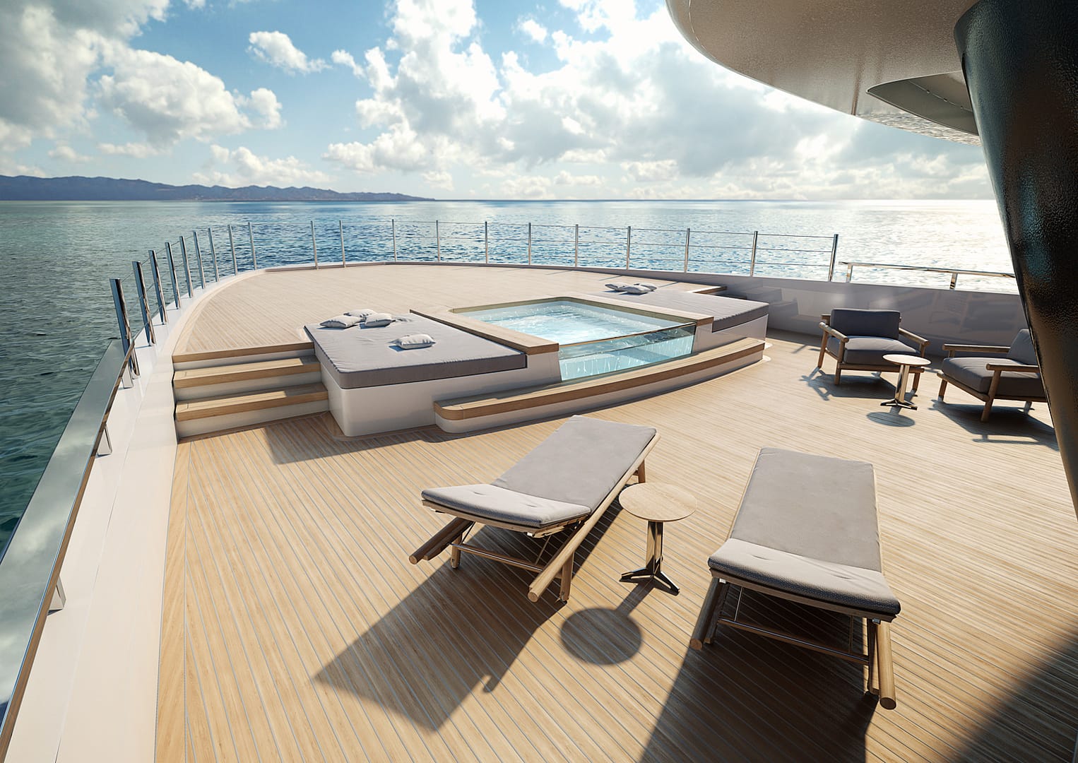 re-engineered engine room and three-sided beach club to its private owner’s world on