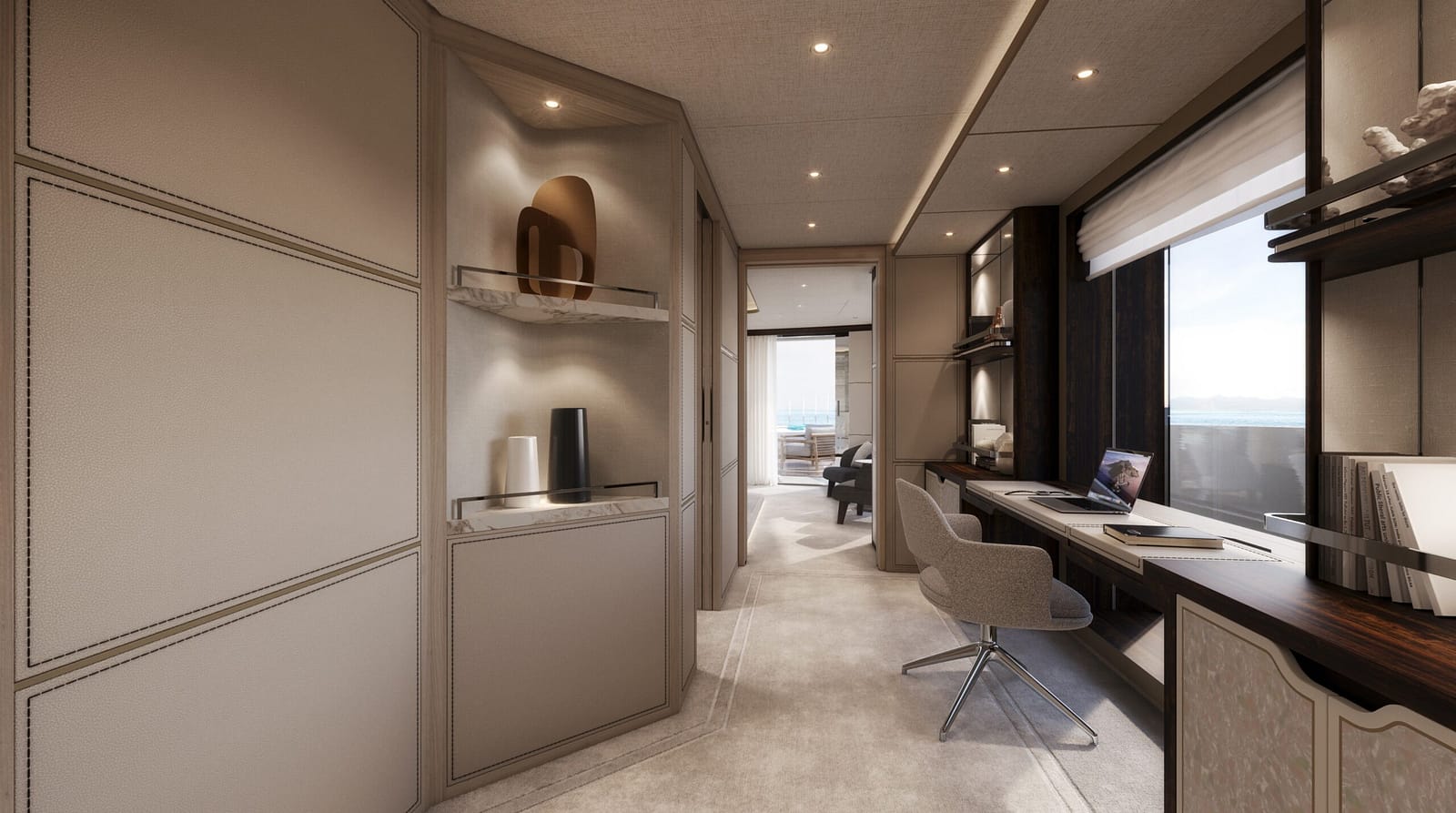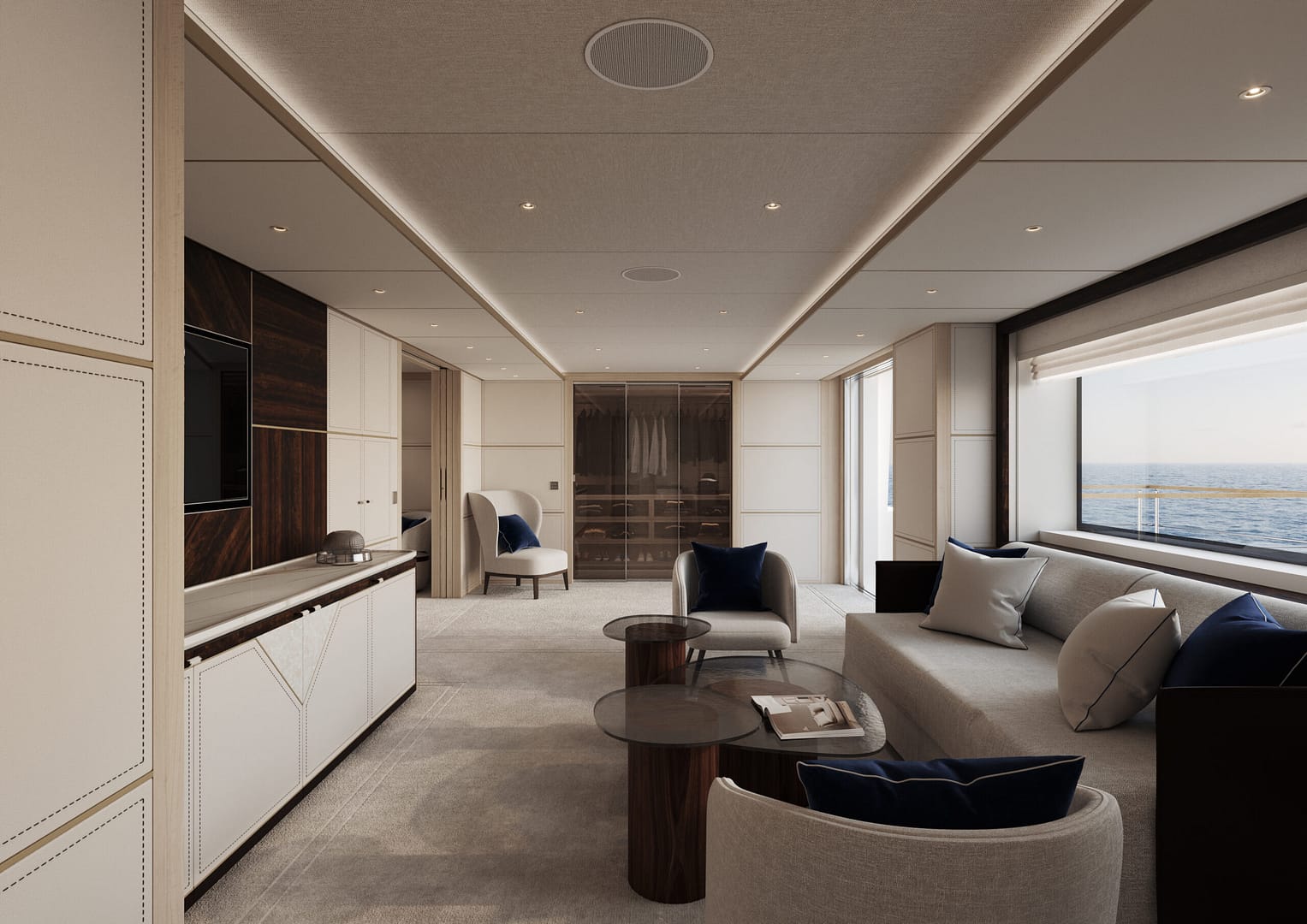 Crafted by the Sanlorenzo Style Department, 58Steel’s interiors are defined by a warm,