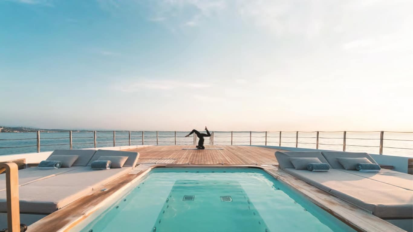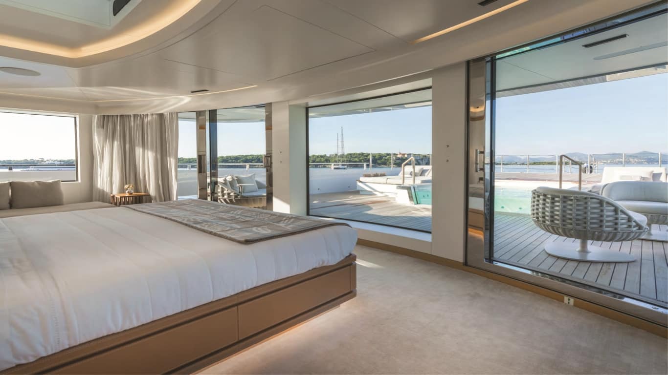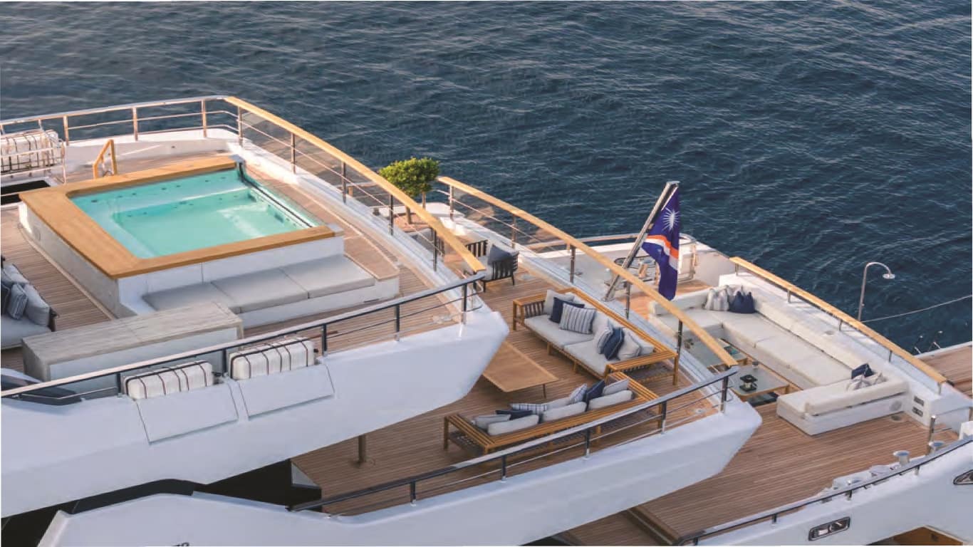- Five‑deck layout with full‑beam owner’s deck and private forward pool/jacuzzi.