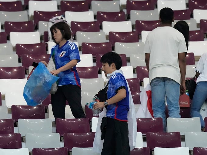 Why you may see Japanese soccer fans cleaning up the stadium after World Cup games