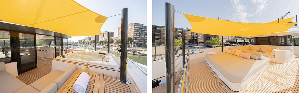 • Notable features: fold‑out hydraulic beach club platform; lazarette equipped for water sports and wellness